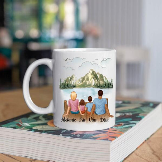 Gezin met Vader, Moeder, Dochter en Zoon - Family Heart ♥ - Gepersonaliseerde mok voor Gezin, Vader, Moeder, Dochter, Zoon, Kinderen, Familie, Kind, Stiefvader, Stiefmoeder, Dochters, Zoons