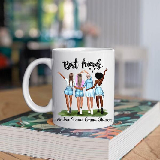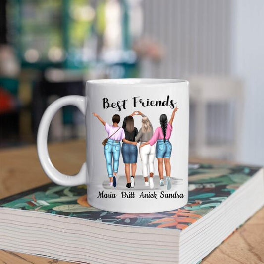 Best Friends 4 Personen - Friends forever ♥ - Gepersonaliseerde mok voor Vriendin, Vriendinnen, Vrouw, Vriendschap, Zus, Zusje, BFF, Collega, Dochter