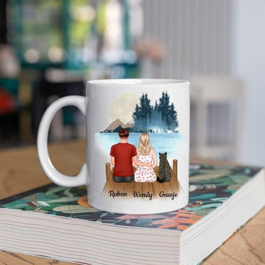 Kattenbaasjes Koppel met 2 Katten in het Bos - Cat Family ♥ - Gepersonaliseerde mok voor Kattenmama, Kattenouders, Katteneigenaar, Kattenbaasjes, Partner, Vriend, Vriendin, Vrouw, Man, Kitten