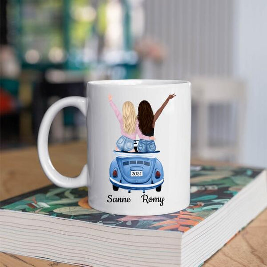 Beste Vriendinnen / Zusjes in een Auto - Sisters Forever ♥ , Zussen of Collega's - Gepersonaliseerde mok voor Vriendin, Vrouw, Vriendschap, Zus, Zusje, BFF, Collega, Meisje