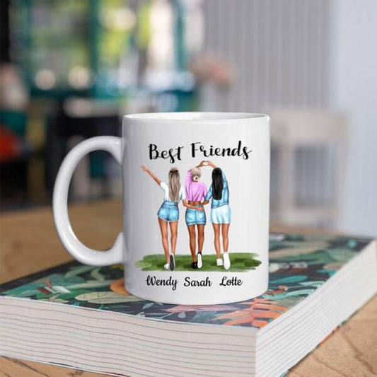 Best Friends 3 Personen - Beautiful Besties ♥ - Gepersonaliseerde mok voor Vriendin, Vriendinnen, Vrouw, Vriendschap, Zus, Zusje, BFF, Collega, Dochter