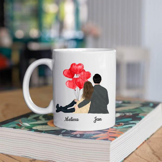 Koppel met Ballonnen Zittend - You are my person ♥ - Gepersonaliseerde mok voor Partner, Vriend, Vriendin, Vrouw, Man, Jubileum