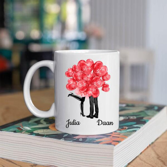 Koppel met Ballonnen Staand - Be Mine ♥ - Gepersonaliseerde mok voor Partner, Vriend, Vriendin, Vrouw, Man, Jubileum
